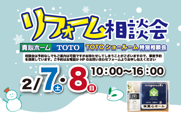 リフォーム無料相談会を2月7日(土)8日(日)の10時~16時、