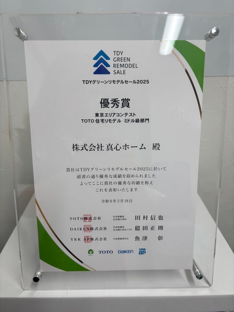 TDYグリーンリモデルコンテスト2025の東京エリアにおいて、賞をいただきました。